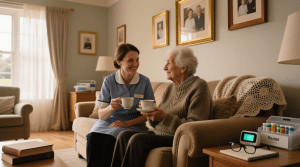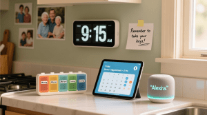 • Help using tablets, smartphones, and video calls • Setting up reminders, safety devices, and smart home tools • Encouraging engagement through memory and music apps
